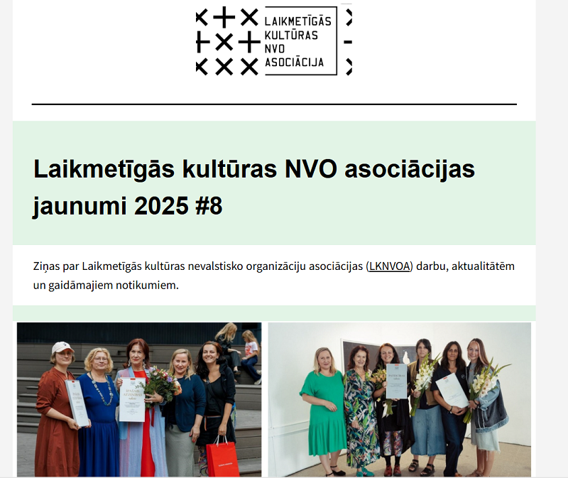 Vēstkopā apkopota aktuālā informācija par Laikmetīgās kultūras nevalstisko organizāciju asociācijas (LKNVOA) aktivitātēm un biedru rīkotajiem pasākumiem. Kā ierasts- vēstkopas saņēmēju skaitā ir valsts līmeņa un pašvaldībās vēlēti tautas pārstāvji, amatpersonas, kuru darba pienākumi ir saistīti ar inovatīvās kultūras procesu kā Rīgā, tā Latvijas reģionos attīstīšanu un atbalstīšanu, mediji, kā arī ikviens interesents, kurš LKNVOA mājas lapā https://lknvoa.lv/ ir pieteicies jaunumu saņemšanai.